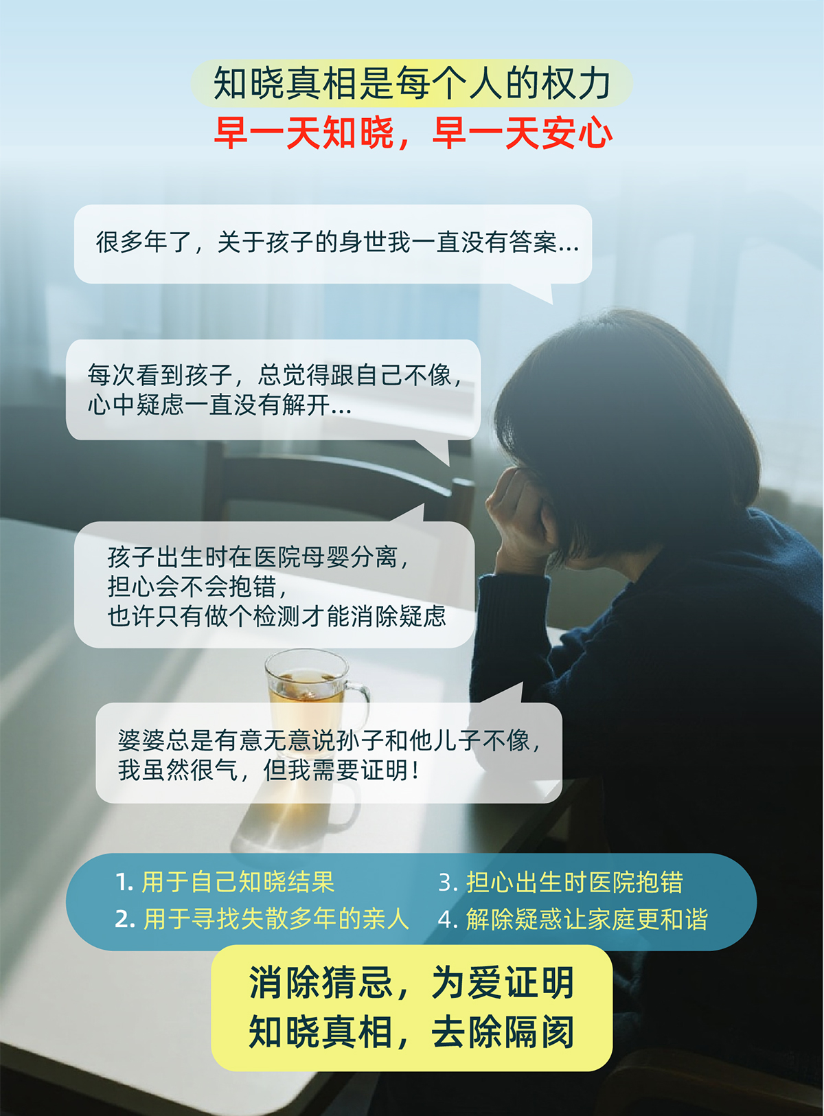 八大核心优势 检测流程 样本采集 样本采集方法1 样本采集方法2 个人亲子检测优势 匿名检测保护隐私